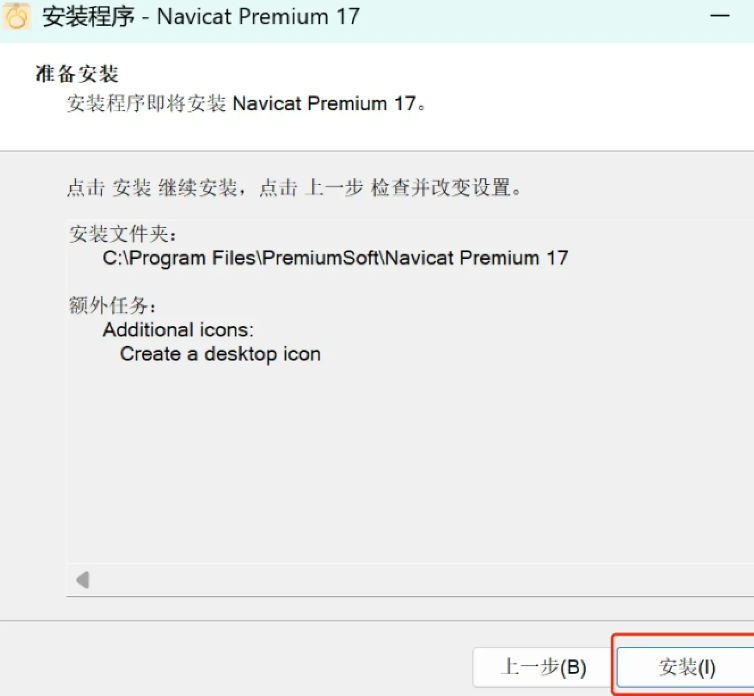 1.双击下载的 “navicat17-premium.exe”,启动安装程序(提示:关闭杀毒软件避免拦截)。
