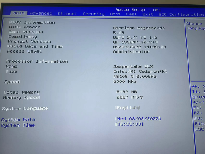 八: 联系你的售后客服或者技术,获取最新的BIOS文件和引导文件,下面以N5105为例,BIOS名称是1338NP-12,刷BIOS之前的BIOS版本是下图