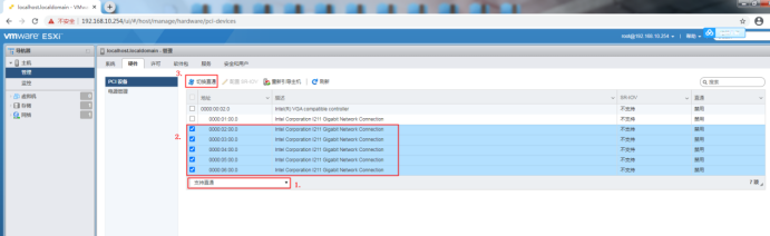 点击:管理—硬件—快速筛选器选(支持直通)—把网卡勾上(第一张网卡不要勾)—点切换直通