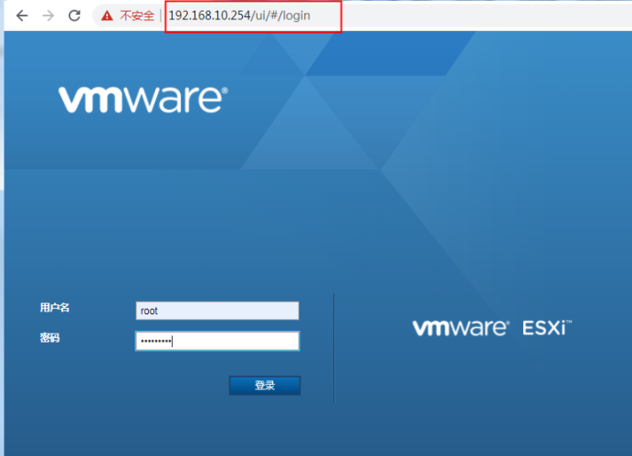 1.打开谷歌或者火狐浏览器,打开192.168.10.254网页登录esxi