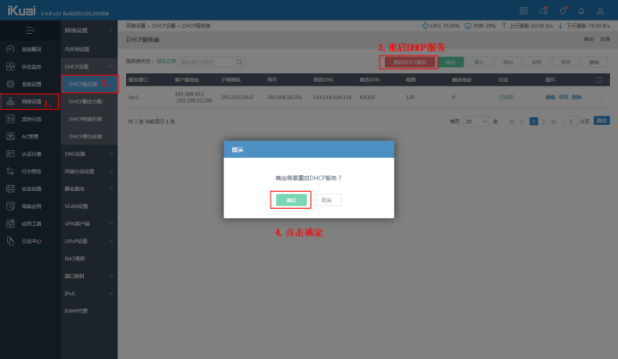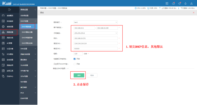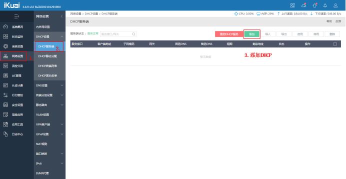 ①.点击:网络设置—DHCP设置—DHCP服务端—添加
