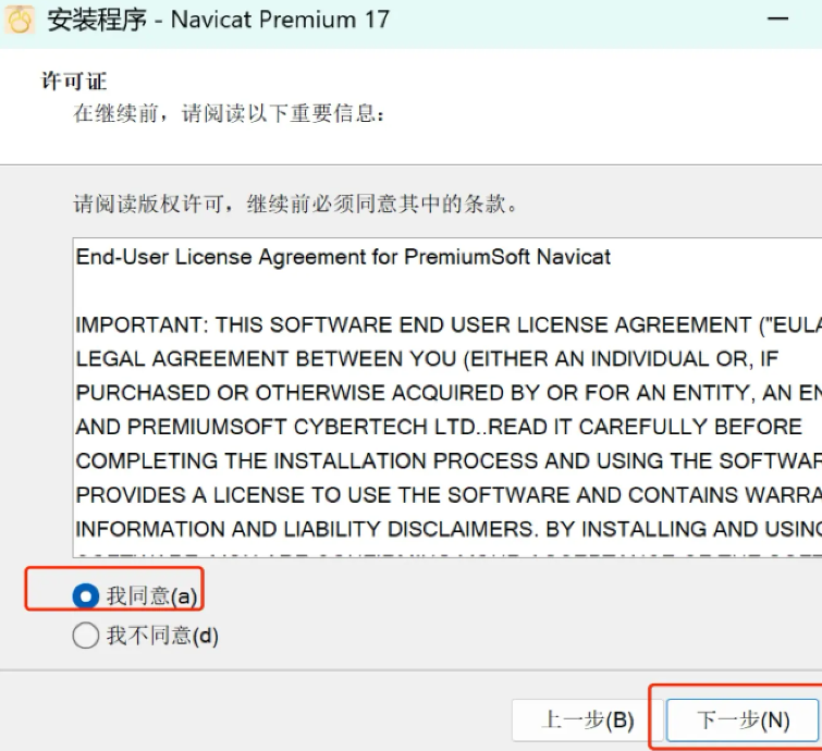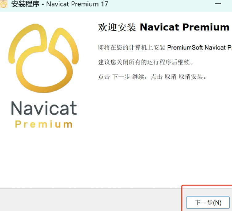1.双击下载的 “navicat17-premium.exe”,启动安装程序(提示:关闭杀毒软件避免拦截)。