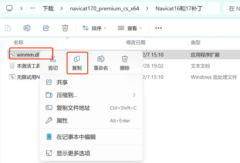 2.找到解压后的 “winmm.dll” 文件(激活核心文件)。