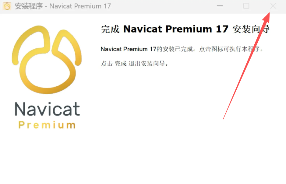 7.Navicat 17安装完成后切勿打开软件,直接关闭窗口(激活失败常见原因)。注意: 安装完后不要打开已打开自行退出